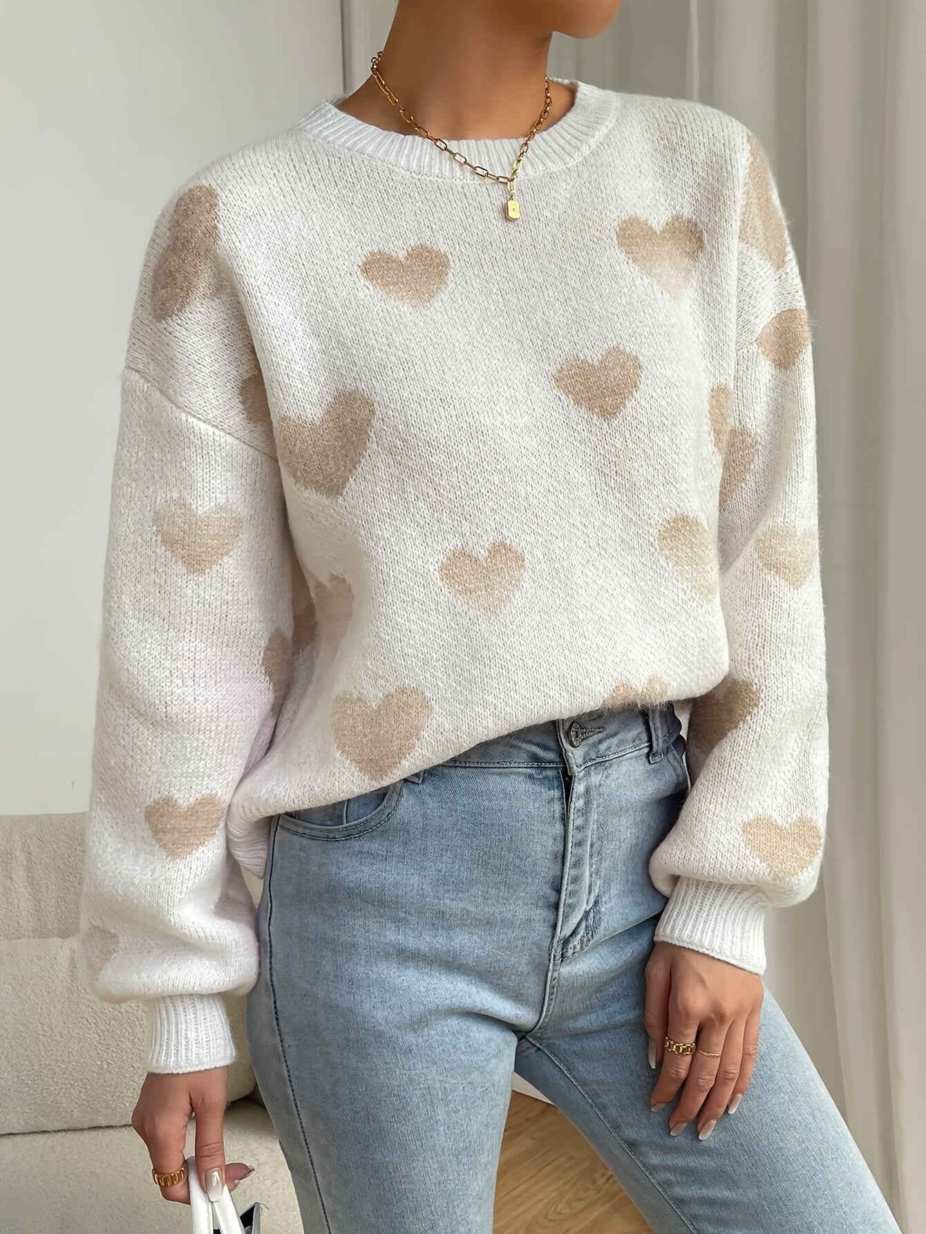 Thanks to the soft knit material and charming heart design, this sweater offers not only warmth but also a cheerful vibe. The loose fit and high-quality craftsmanship make it an indispensable part of your wardrobe.